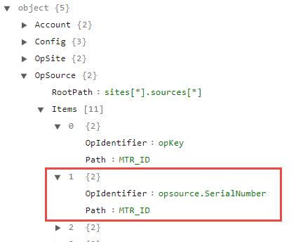 This indicates the the business key element is identified by the property ''MTR_ID'' in the Master Data Upload file and that the business key value resides in the property SerialNumber of the source object