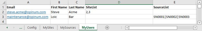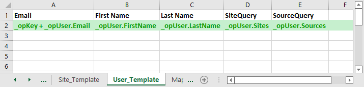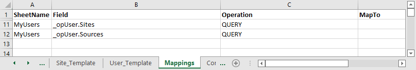 Sites and sources are granted to users respectively by _opUser.Sites and _opUser.Sources columns in users's template sheet.