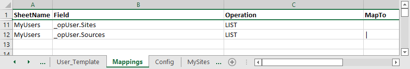 See Sites/sources lists (Excel) sample.