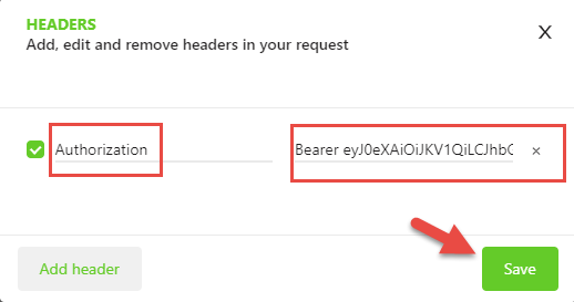 Set the Header key to "Authorization", paste clipboard content in the Header value and click on Save button.