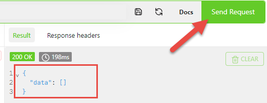 Now, the query is crafted, you can send the request by clicking on the Send Request button. As expected, the result is empty but it means that the query successfully reached the server